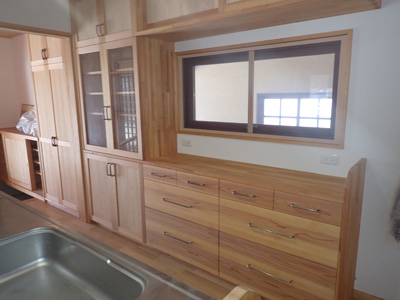 | 台所です。大工さんが作った造作のキッチンです。背面には収納たっぷりです。 | ||