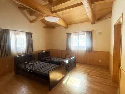 | 1階 寝室 12.5帖、吹き抜け風。寝室としては広めです。 | ||